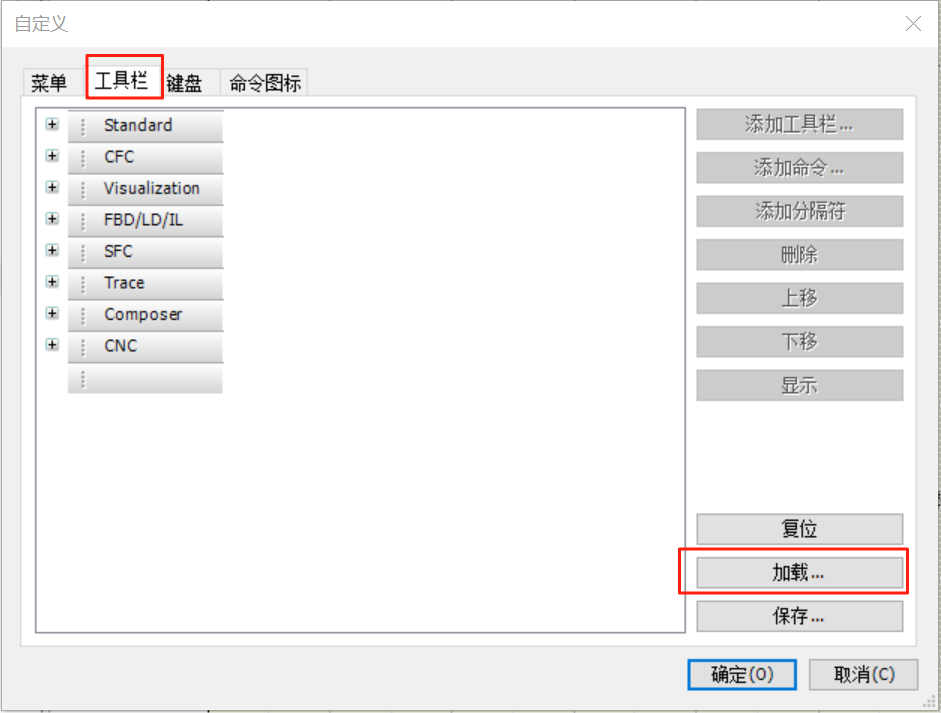 - 加载CODESYS.opt.tbar文件